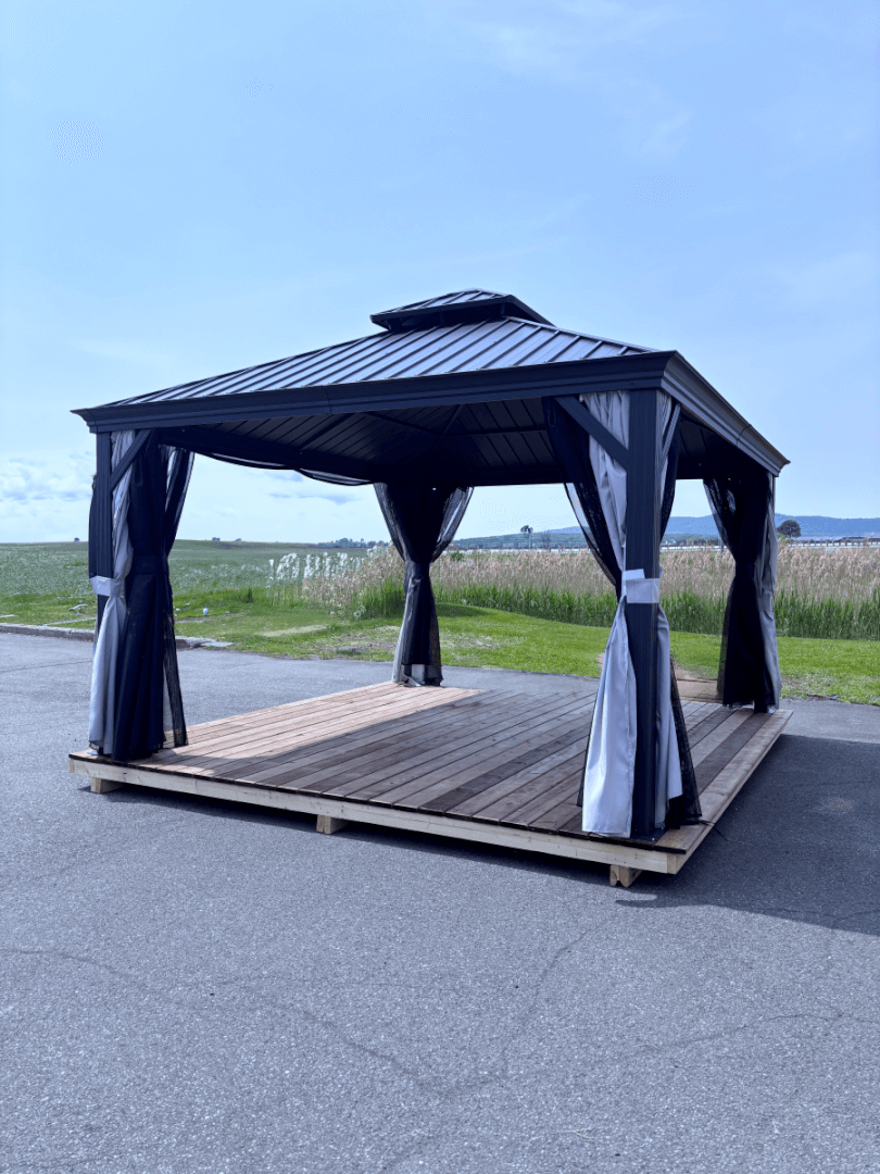 Le gazebo : REFUGE est conçu d’une structure alliant aluminium et acier.